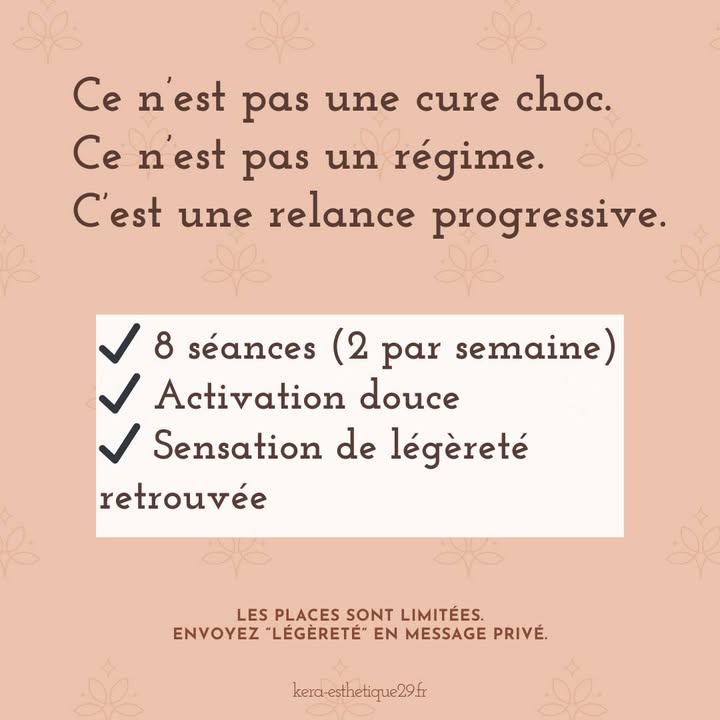 #ParentheseLegerete #RelanceDePrintemps #SilhouetteEnHarmonie #VentrePlusPlat #JambesLegeres #Femme40Plus #CorpsEnTransition #MinceurDurable #AccompagnementPersonnalise #Plomeur #PaysBigouden #KeraEsthetique #CultiverSaDifference